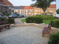 Probleem Voegen begroeien snel. Hier werd gekozen om volledig te verharden in grote elementen van gewassen beton om zo de voeglengte te beperken. Deze verharding is zeer groot waardoor water niet kan infiltreren op deze oppervlakte. De verharding is te groot voor het gebruik. De voegen die niet bewandeld worden zullen vergroenen. Oplossing
