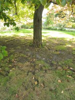 Probleem Gras wil niet groeien onder een boom vanwege de schaduw en droogte (de boom neemt veel water op, de bladeren houden veel van de regen tegen). Als gevolg daarvan zijn er kale plekken onder de boom met mos en hier en daar spontane vegetatie. Oplossing